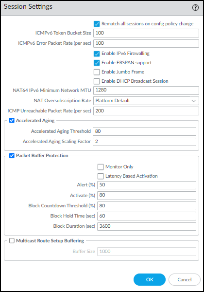 - Click the Edit icon for Session Settings, select Enable ERSPAN Support, and then click OK.