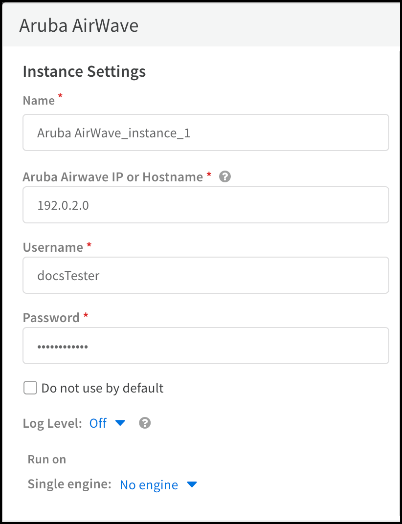 - Use single engine: When using a cloud-based Cortex XSOAR instance and an on-premises Aruba AirWave server, choose the Cortex XSOAR engine that you want to communicate with the Aruba AirWave server.