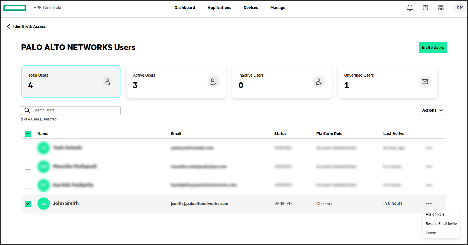 - Once the account is activated, select Identity & AccessUsers, select the newly activated user, click the Action menu icon ( . . . ), and then click Assign Role.