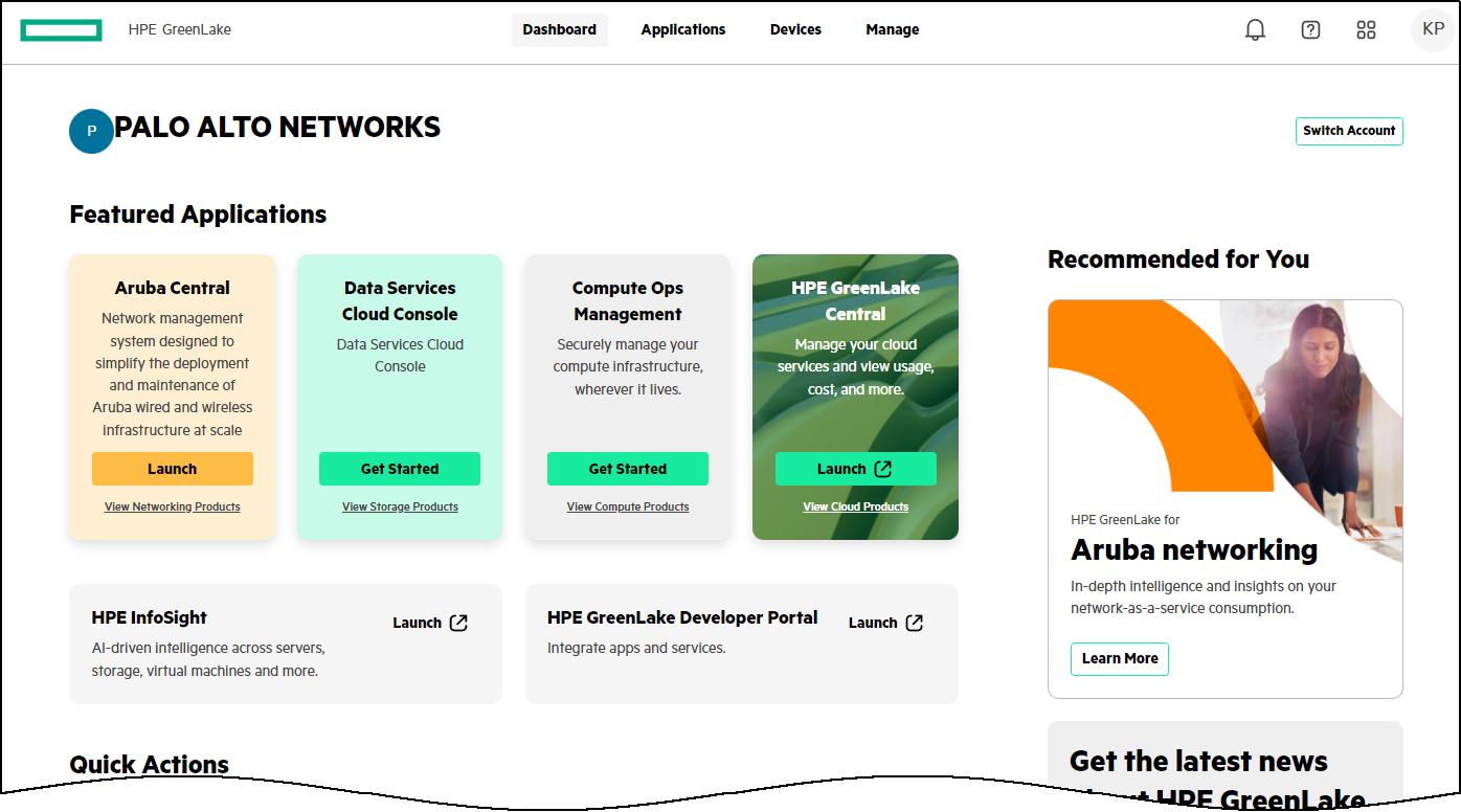 - Log in to Hewlett Packard Enterprise (HPE) with an account that has administrator credentials and navigate to the homepage of your account.