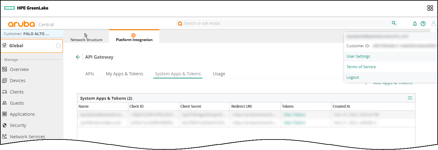 Create an API gateway and get the information for configuring an Aruba Central integration instance in XSOAR.- Return to your HPE GreenLake homepage and click Launch for Aruba Central.