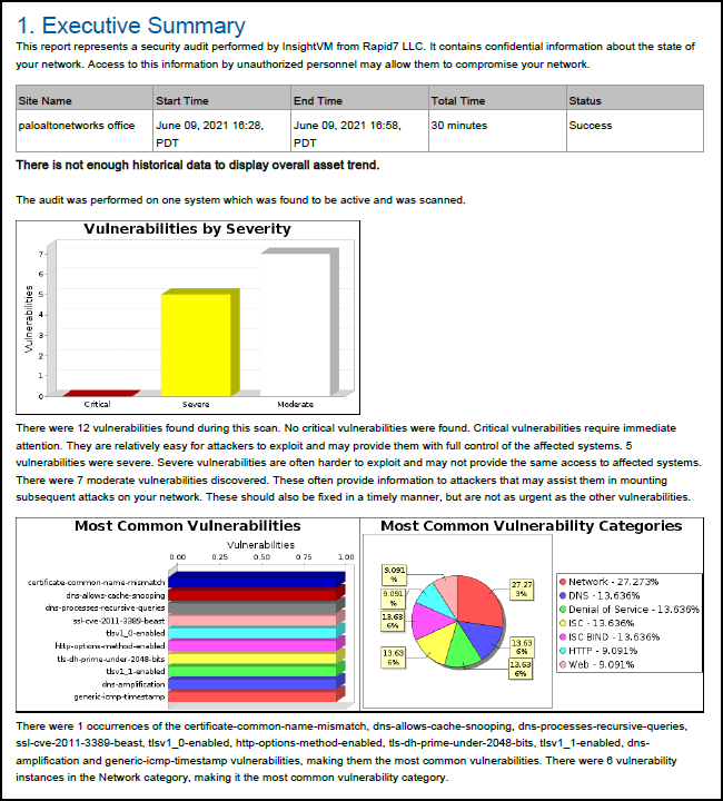 The report consists of several major sections, depending on the Rapid7 profile that was used:- Executive Summary