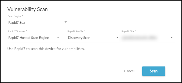 Rapid7 Site: Choose the site where the device to be scanned is located.