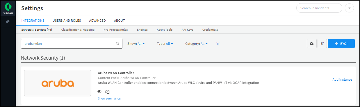 - Device Security uses Cortex XSOAR to integrate with Aruba WLAN controllers, and the settings you must configure to integrate with it are in the XSOAR interface. To access these settings, click Launch Cortex XSOAR.The Cortex XSOAR interface opens in a new browser window.