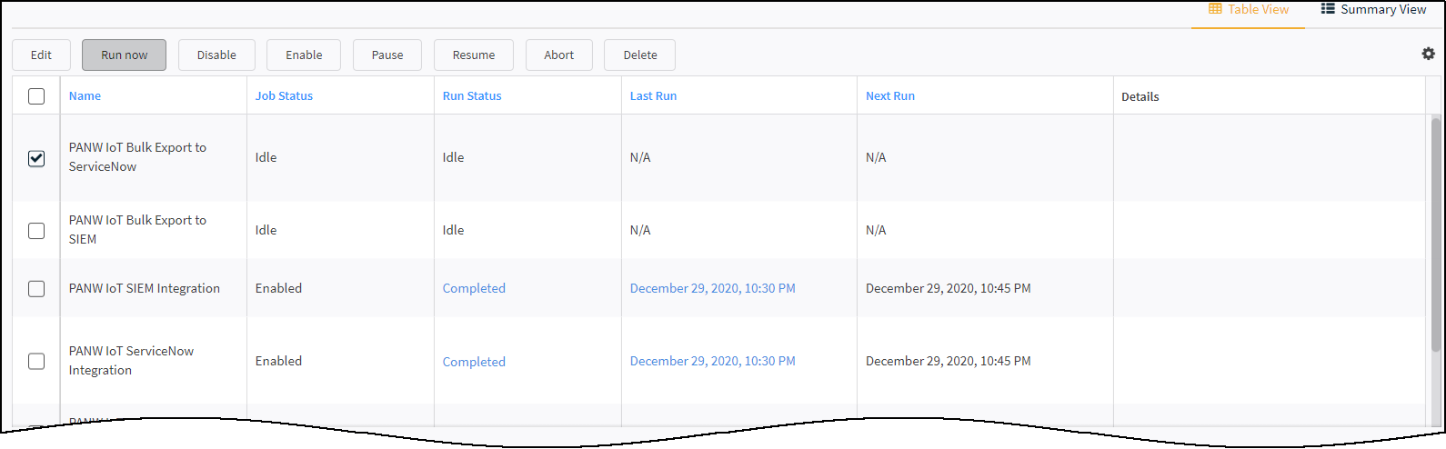 - Repeat these steps for the PANW IoT Bulk Expert to ServiceNow job.