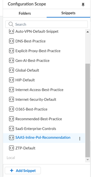 Use snippets to standardize a common base configuration for a set of NGFW, and Prisma