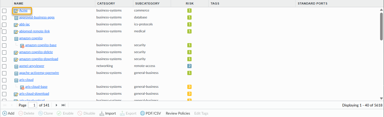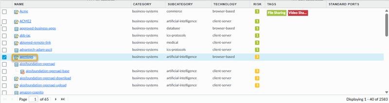 - Select PoliciesSecurity and Add a Security rule to allow the new application.Run the application from a client system that is between the firewall and the application and then check the Traffic logs (MonitorTraffic) to make sure that you see traffic matching the new application (and that it's being handled per your policy rule).(Optional) Add tags to your custom application. Keep in mind, this cannot be done during the initial creation of the custom application.