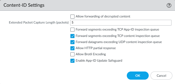 - Verify that you have PAN-OS 12.1.5 or later installed.Log in to the PAN-OS web interface.Select DeviceSetupContent-IDContent-ID Settings and edit the settings.Enable or disable Enable App-ID Update Safeguard.