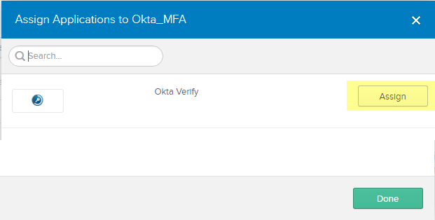 Select Add Application.Search for Okta Verify.Select Add, then Done.