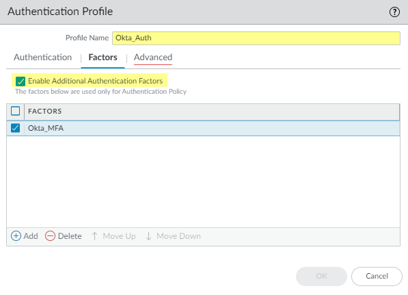 Add a Multi Factor Authentication Server Profile for Okta.- Select DeviceServer ProfilesMulti Factor Authentication.Add an MFA server profile.