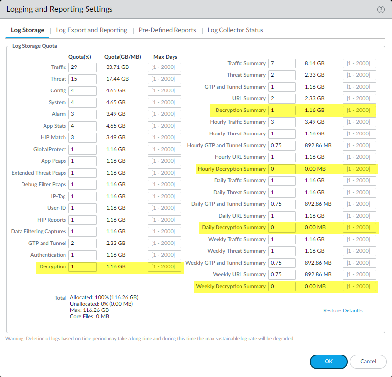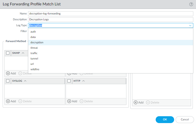 The firewall generates Decryption logs for