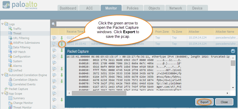 existing rule. Set Packet Capture to single-packet or extended-capture.