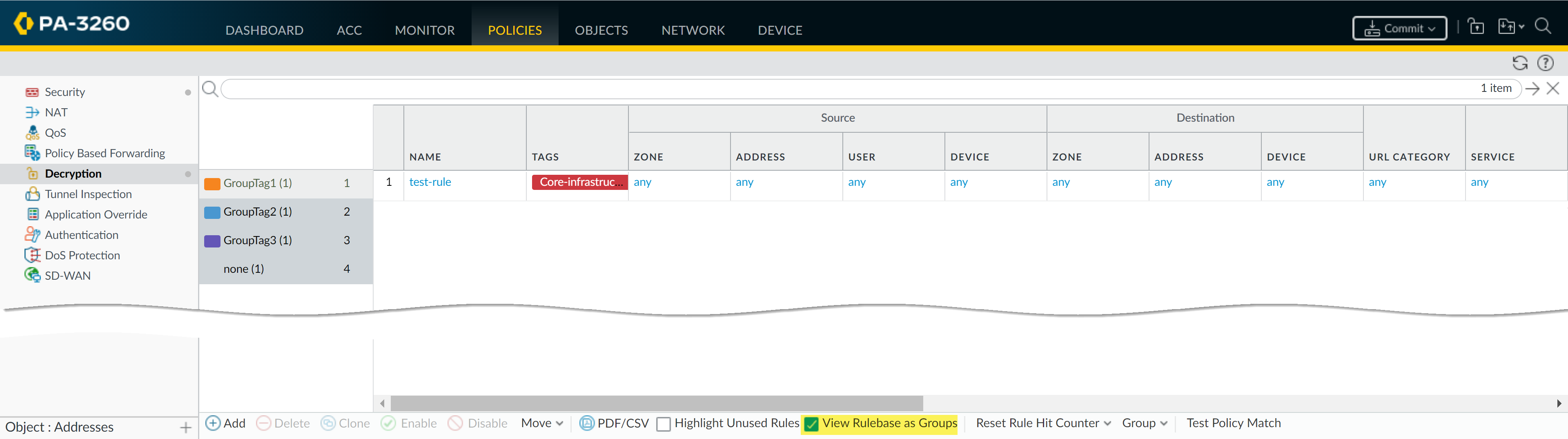 Viewing the rulebase as tag groups maintains the rule evaluation
