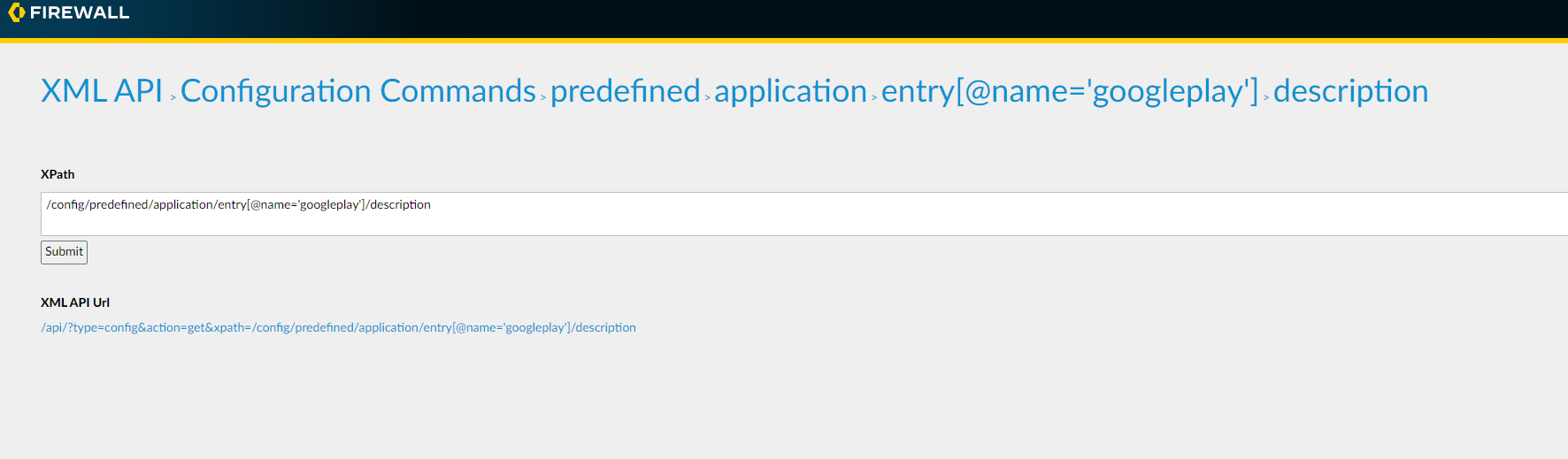 Along with the URL, the API browser also provides the XPath as necessary, as shown here for a description of a predefined application: