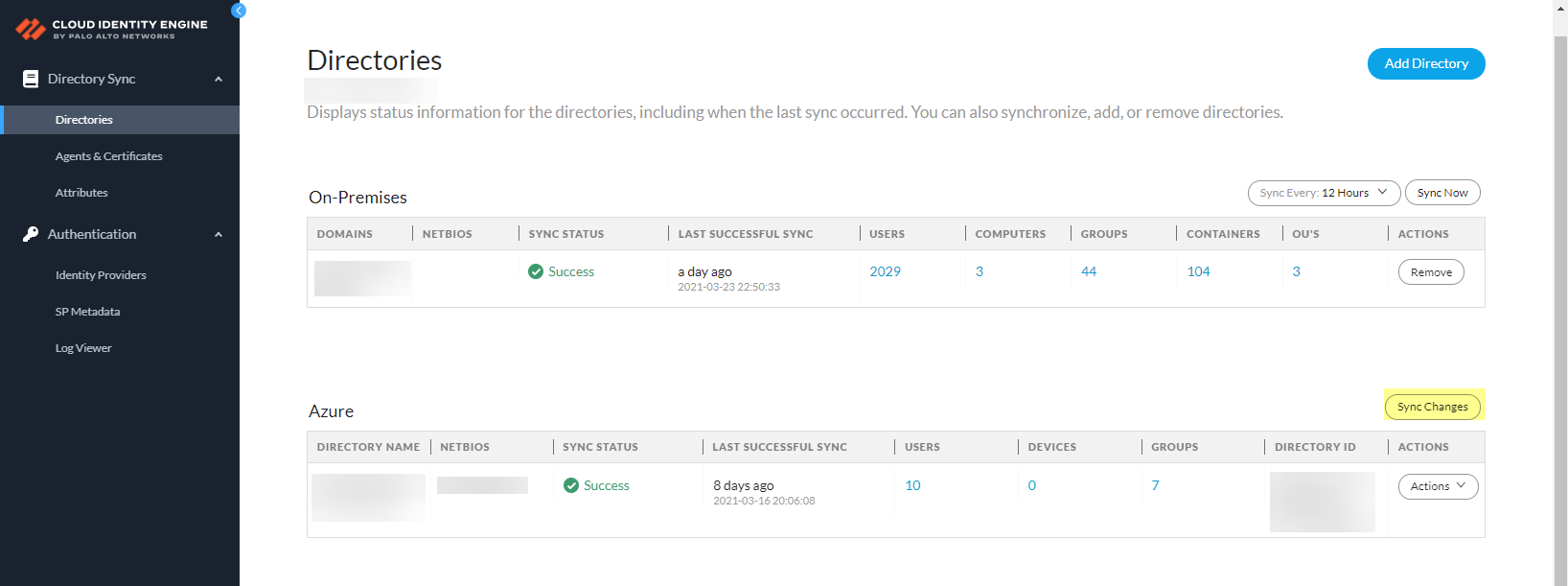 your directory. By default, the Cloud Identity Engine syncs changes every five minutes. If you want to instantly sync your directory updates, you can sync just the changes to your Azure Active Directory (Azure AD) or on-premises AD, which is much faster than a full sync of your directory.