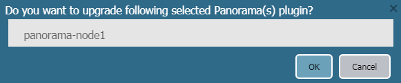 Upgrade the Panorama Interconnect plugin on the Panorama Node.- Select PanoramaInterconnectPanorama Nodes, select one or more Panorama Nodes, and Upgrade Plugin.Verify the selected Panorama Nodes and click OK to begin the plugin upgrade.