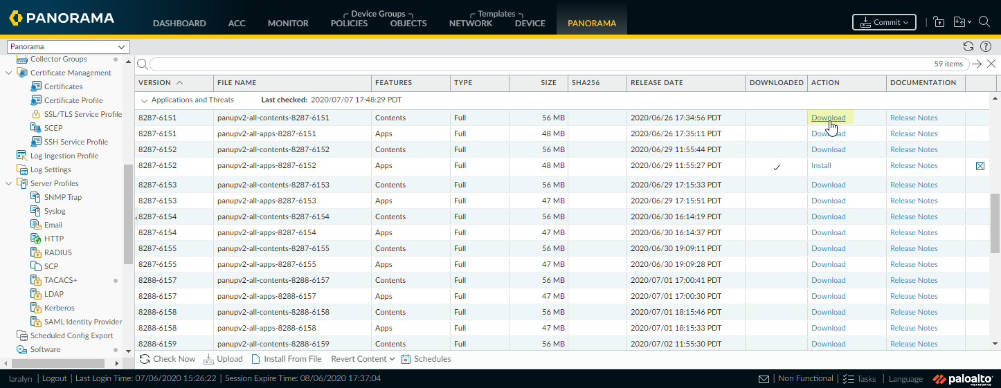 - Panorama, Log Collector, Firewall, and WildFire Version Compatibility
