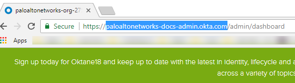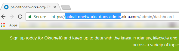 For example, in the example Okta Admin Dashboard URL above, https://paloaltonetworks-doc-admin.okta.com/admin/dashboard:- The API hostname is paloaltonetworks-doc-admin.okta.com.