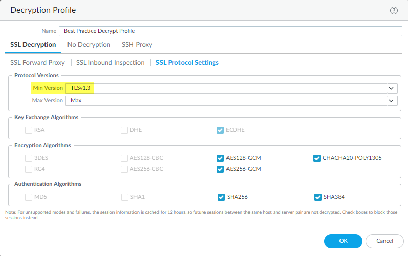 that run older versions of PAN-OS, any Decryption profile that specified TLSv1.3
