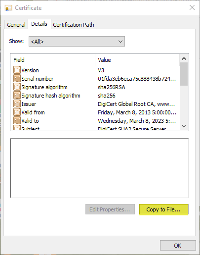 The firewall automatically adds the selected error to the query and shows the full URI path (the full URI path may be truncated in the Error column).Copy and paste the URI into your browser and then press Enter to download the missing intermediate certificate.