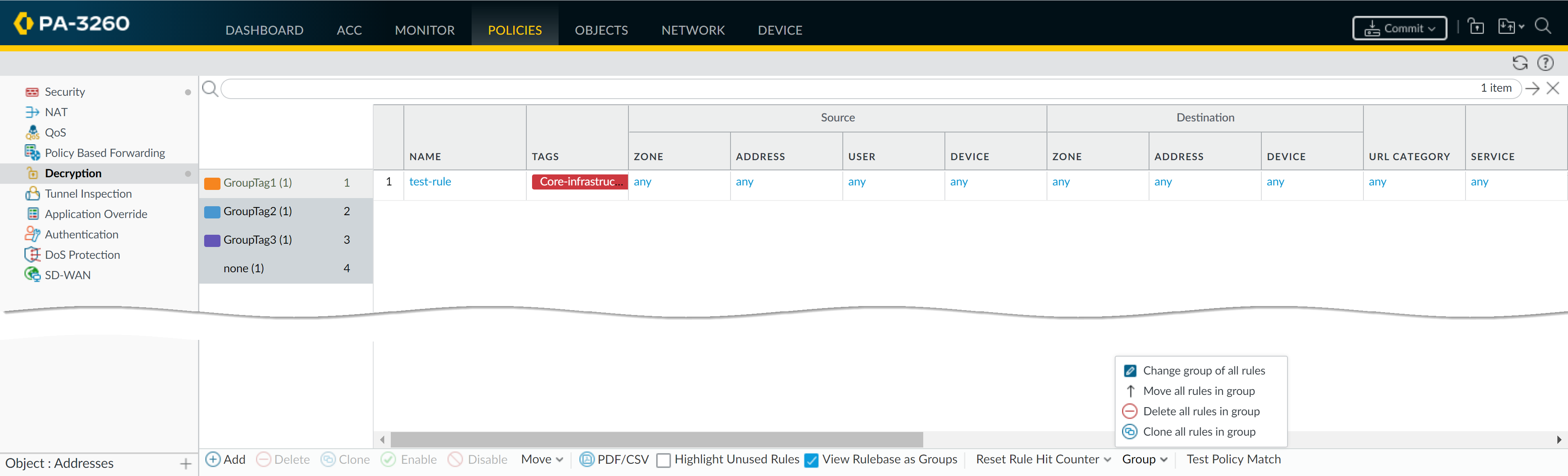 all policy rules in the selected tag group to the Pre-Rulebase or