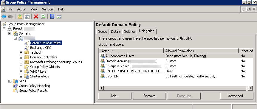 Policy Management<your domain>Default Domain PolicyActionEdit for the Windows server