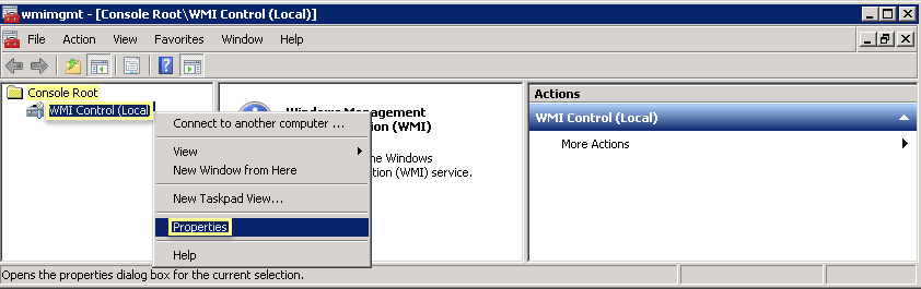 - Right-click the Windows icon (), Search for wmimgmt.msc, and launch the WMI Management Console.