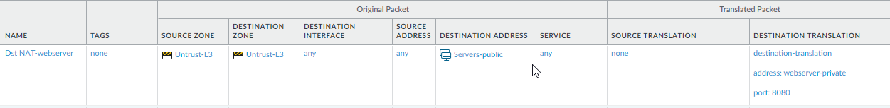 using the IP address 192.0.2.100 and TCP Port 80. The destination NAT