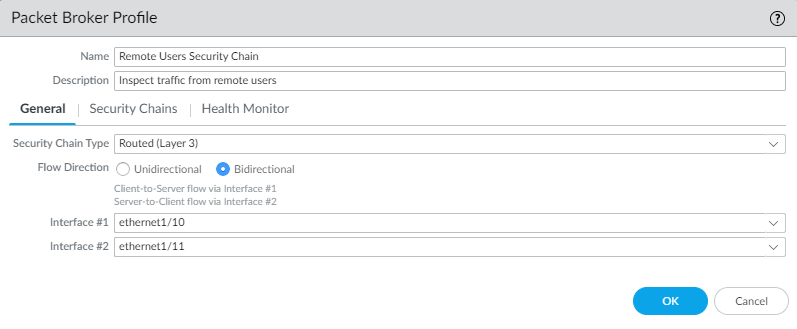2. Configure a Packet Broker profile to control how to forward the traffic to the routed layer 3 security chain.