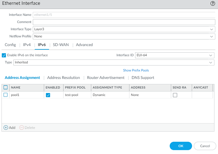 For Address Type, select one of the following:- GUA from Pool—Global Unicast Address that comes from the Prefix Pool.