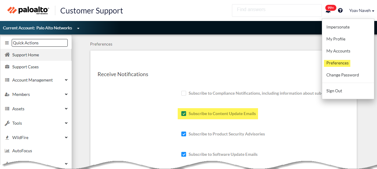 - Always review Content Release Notes for the list of newly-identified and modified application and threat signatures that the content release introduces. Content Release Notes also describe how the update might impact existing security policy enforcement and provides recommendations on how you can modify your security policy to best leverage what’s new.To subscribe to get notifications for new content updates, visit the Customer Support Portal, edit your Preferences, and select Subscribe to Content Update Emails.