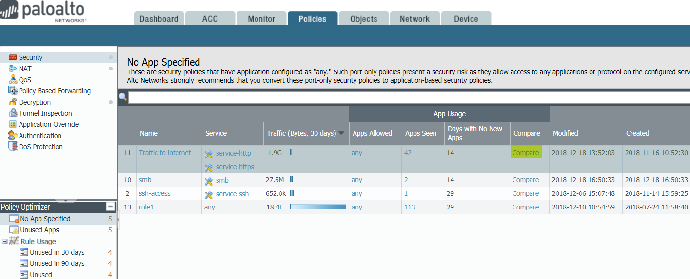 1. Navigate to PoliciesSecurityPolicy OptimizerNo App Specified to view the port-based rules.