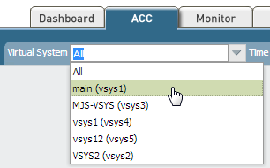 Identify traffic to apply QoS to.Select ACC to view the Application Command Center page. Use the settings and charts on the ACC page to view trends and traffic related to Applications, URL filtering, Threat Prevention, Data Filtering, and HIP Matches.To view information for a specific virtual system, select the virtual system from the Virtual System drop-down: