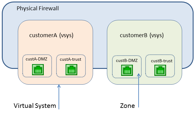 A virtual system is an object that creates an administrative boundary, as shown in the following figure.