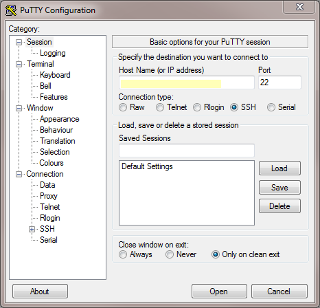 - Initiate remote access to the firewall and view the fingerprint. Using terminal emulation software, such as PuTTY, launch an SSH management session to the firewall using the IP address you assigned to it.