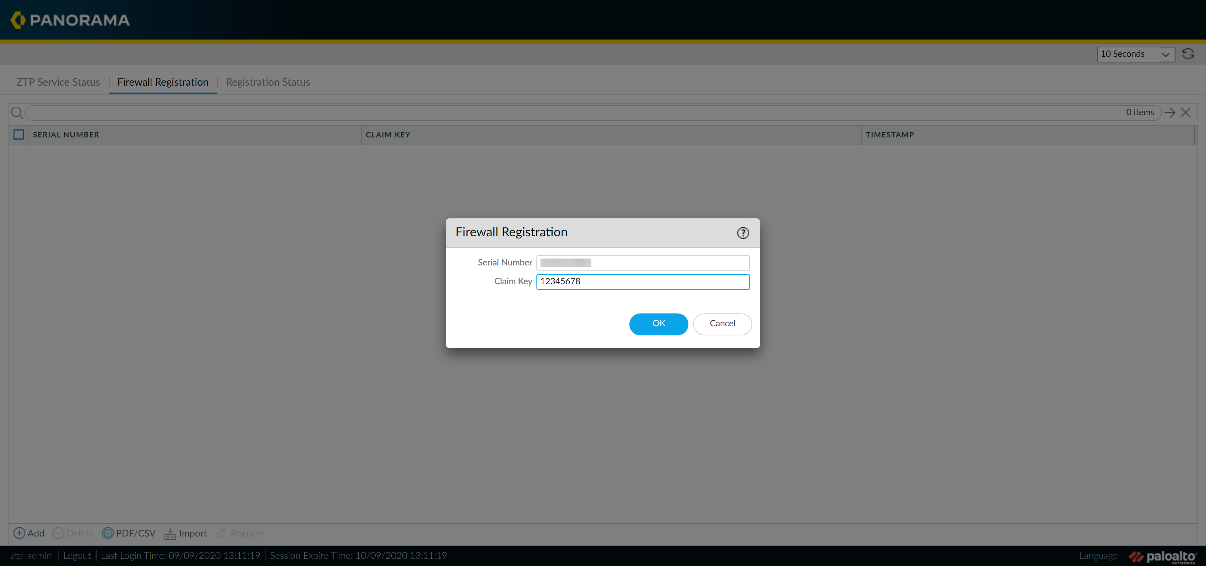 ZTP firewall provided by Palo Alto Networks.The eight digit numeric claim key is printed on a physical label attached to the back of the ZTP firewall you received from Palo Alto Networks.