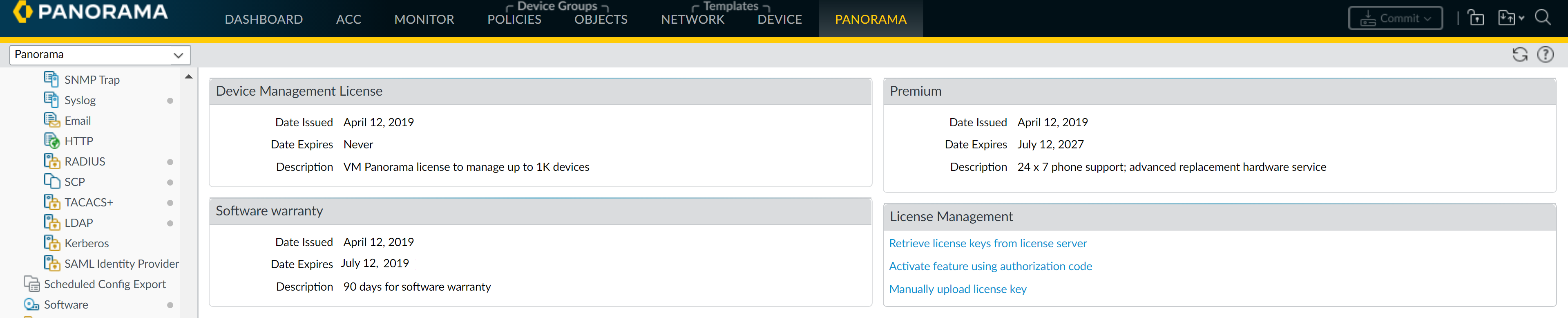 license you activate will determine the number of devices Panorama