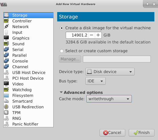 - Expand Advanced options and, in the Cache mode drop-down, select writethrough.