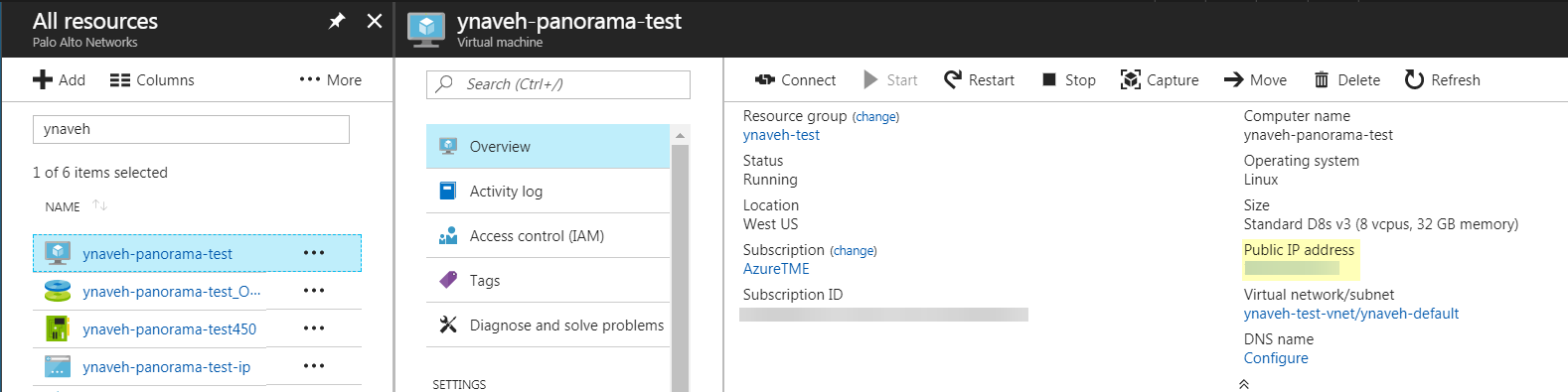- On the Azure portal, select Virtual machines and select the Panorama virtual machine.