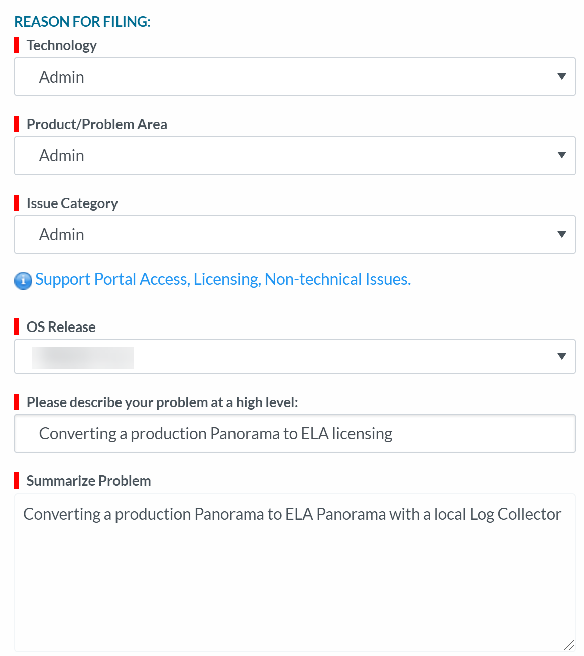 - Panorama virtual appliance in Panorama mode with a local Log Collector.Submit support ticket with Palo Alto Networks to convert your Panorama to ELA licensing. This is required in order to preserve all existing logs on the local Log Collector when converting a Panorama with a local Log Collector to ELA licensing. An example is provided below to assist in filing the support ticket. Create the ticket exactly as displayed below, and select the OS Release your Panorama is running.Continue to the next step only after Palo Alto Networks support successfully resolves your support ticket.