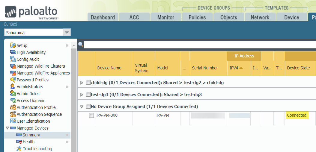 - Add a new managed device (PanoramaManaged DevicesSummary).