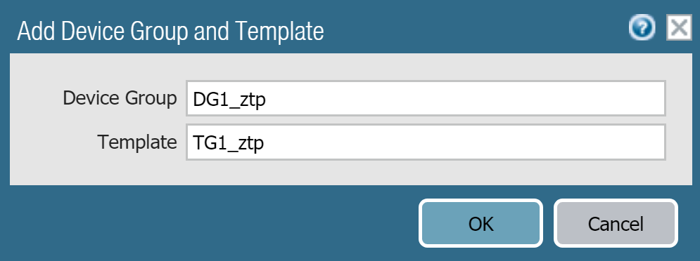 to Panorama. Adding the device group and template automatically generates a new device group and template that contain the default configuration to connect the Panorama and the ZTP firewalls.Palo Alto Networks recommends giving the ZTP device group and template a descriptive name that makes their purpose clear. Unintentionally modifying the default ZTP configuration results in connectivity issues if you want to re-use the device group and template to onboard new ZTP firewalls in the future.