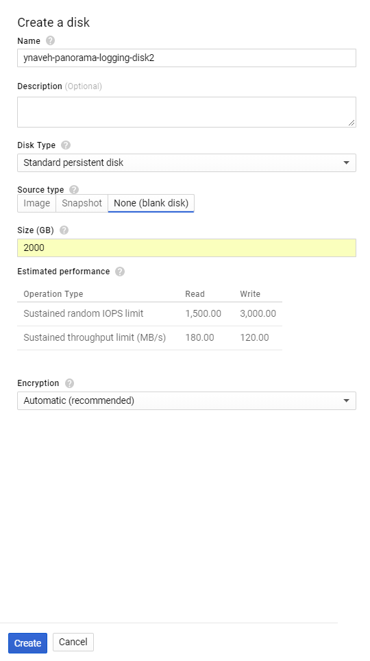 on Google Cloud Platform supports only 2TB logging disks and, in total,