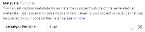 - Enter the following name-value pair as Metadata:serial-port-enable true