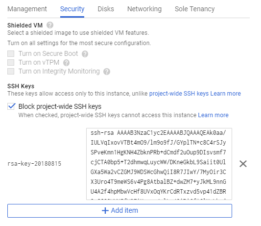 - Select the Block project-wide SSH keys box. Only instance keys are currently supported for logging in to the Panorama virtual appliance after initial deployment.