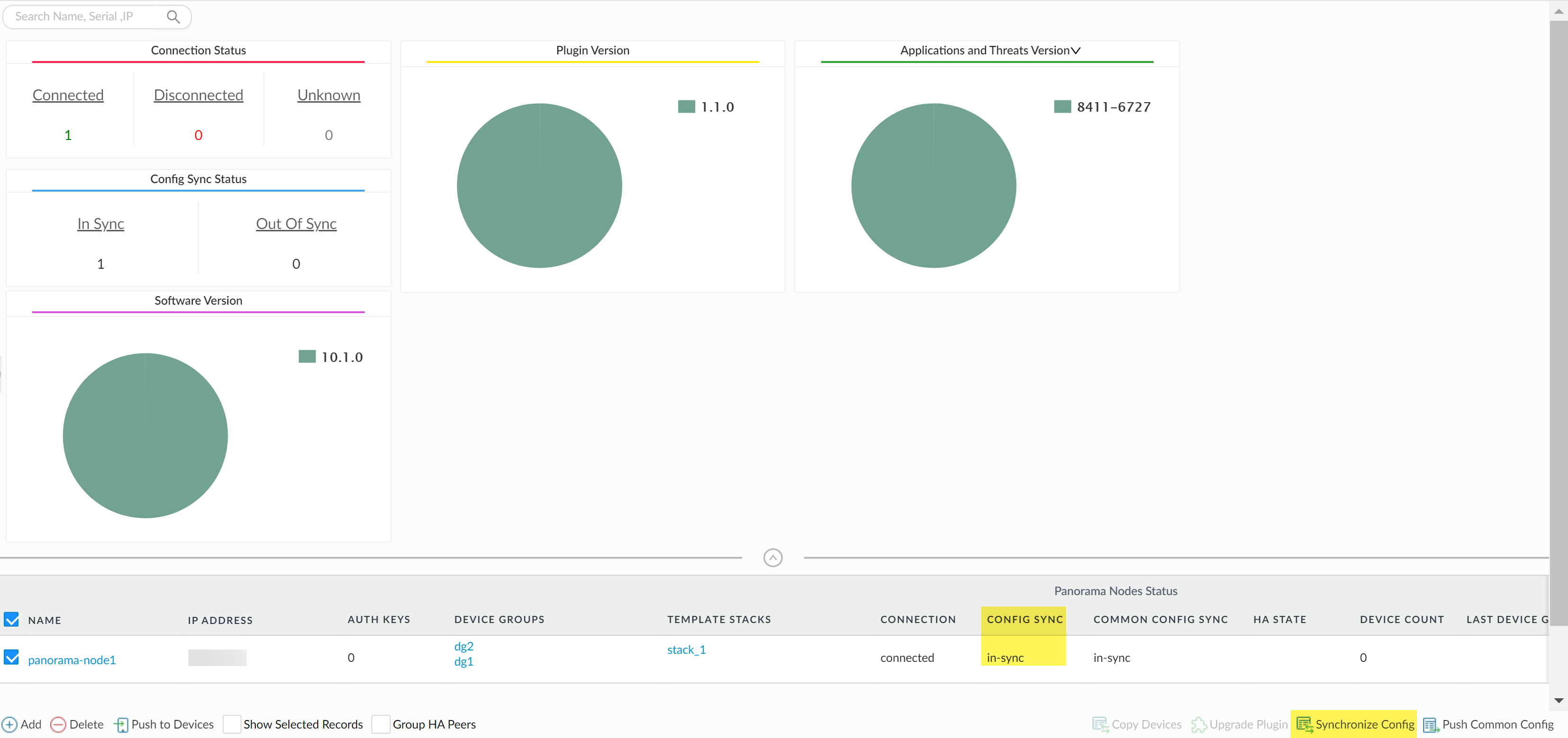 Synchronize the device group and template stack configuration