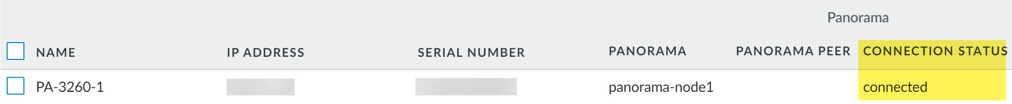 Verify that the newly added firewall is Connected.- Select PanoramaInterconnectDevices.Find the firewall you added and verify that the Connection Status column displays Connected.