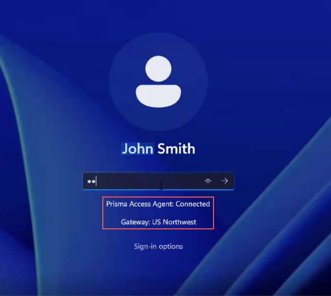 On Windows devices, the Windows login screen will show the Prisma Access Agent