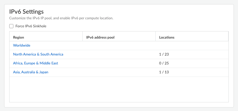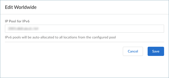 3. In the IPv6 Settings section, select Worldwide and enter the IP Pool for IPv6.