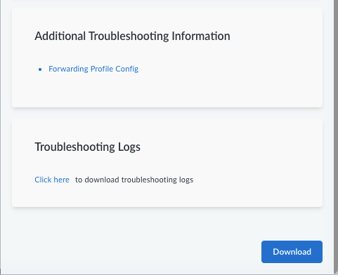 Scroll to the Additional Troubleshooting Information section to access the device's Forwarding Profile Config.